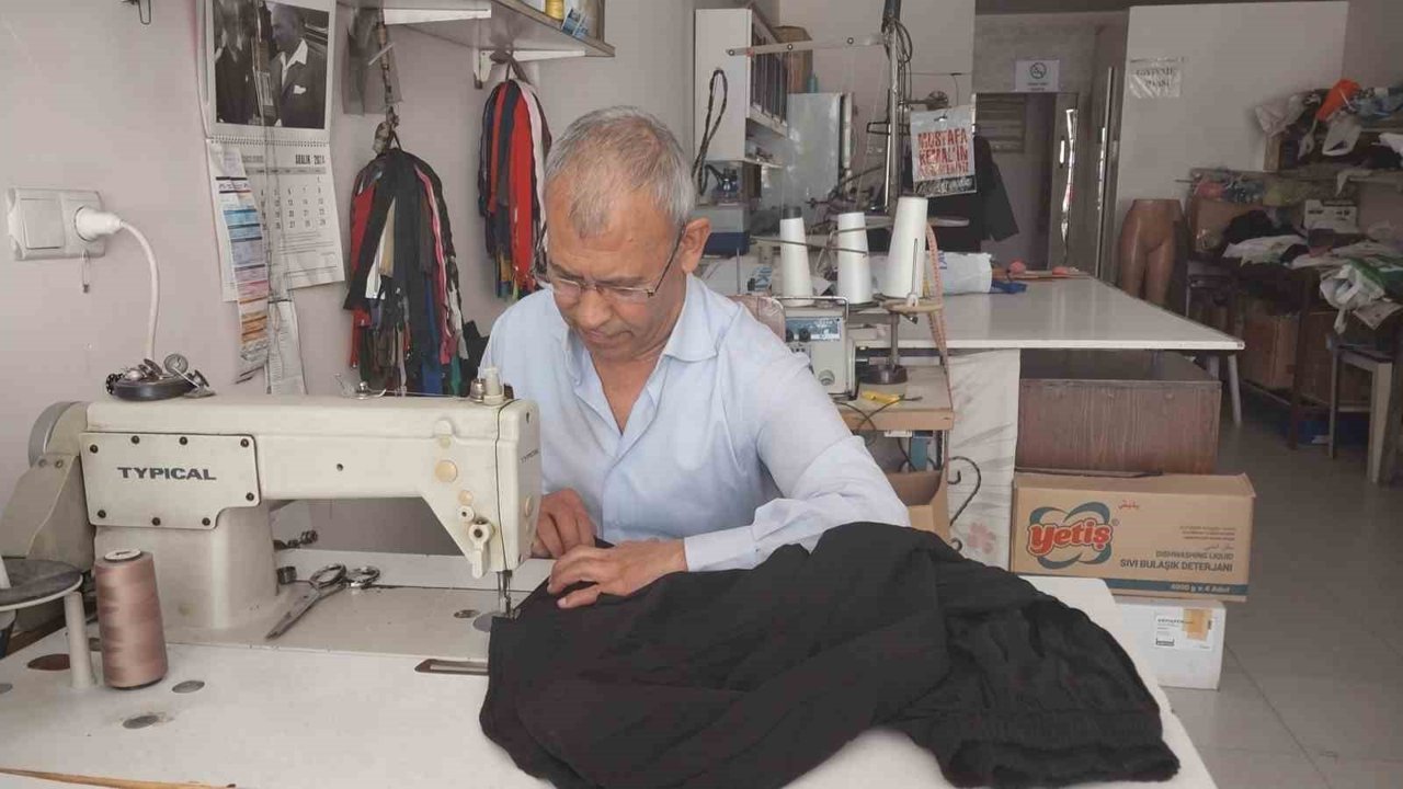 Mersin'in Mut ilçesinde 51 yıldır terzilik yapan Ali Baki (65), mesleğinin geldiği noktadan endişe duyduğunu ve artık sadece tadilat işinin yapıldığını çok nadir elbise dikildiğini, terzilik mesleğinin bitme noktasına geldiğini söyledi. Baki, '1975 yılında çıraklığa başladım. 1975 yılından beri 51 yıl oldu. 51 yıldır bu mesleğin içerisindeyim. Çok yerleri gezdim, çok yerleri dolaştım. Özellikle ağırlık olarak bayan üzerine çalışıyorum. Erkek terziliği de temelimiz' dedi.