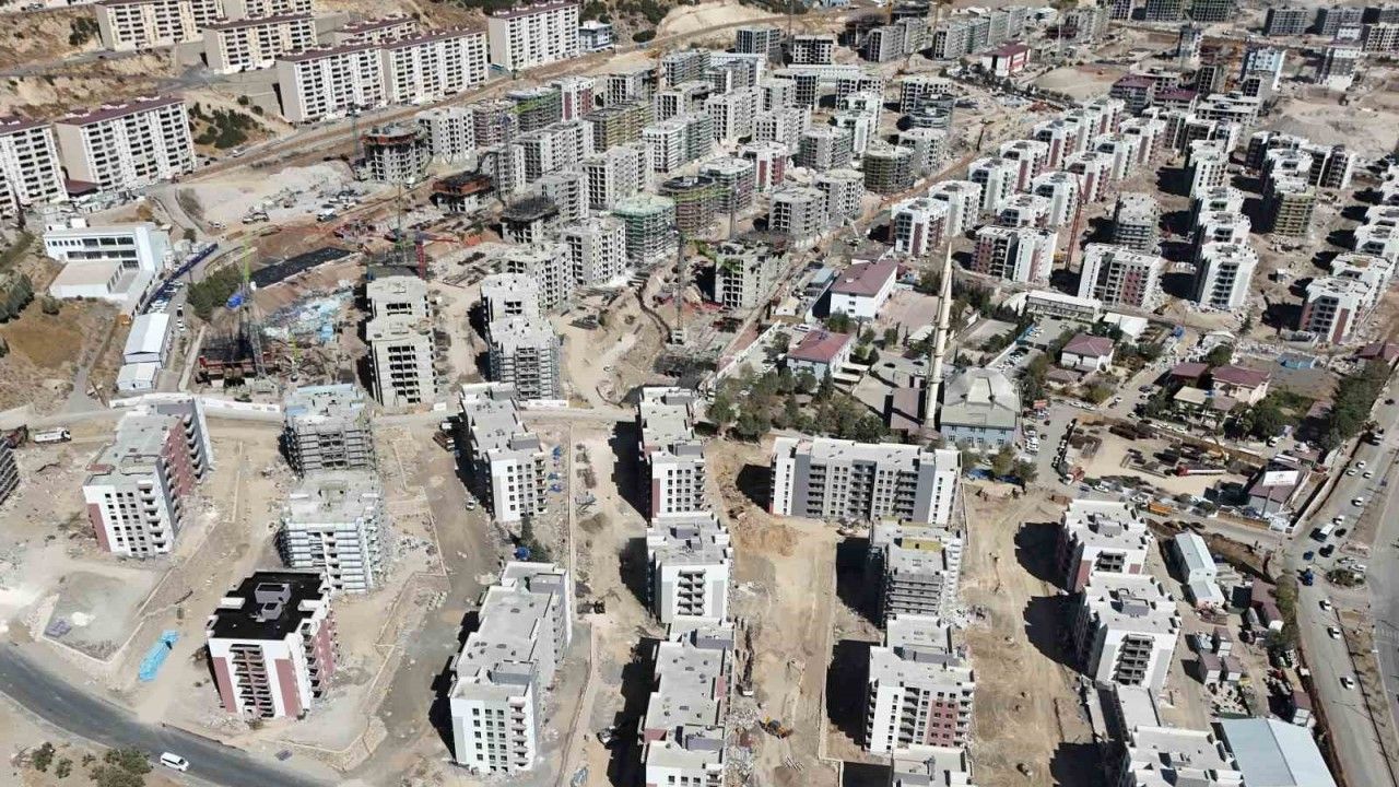 Kahramanmaraş merkezli meydana gelen depremler sonrası Doğukent Mahallesi’nde yapımı süren 28 bloktan oluşan 424 konut ve 42 ticari alanda çalışmalar hızla devam ediyor.