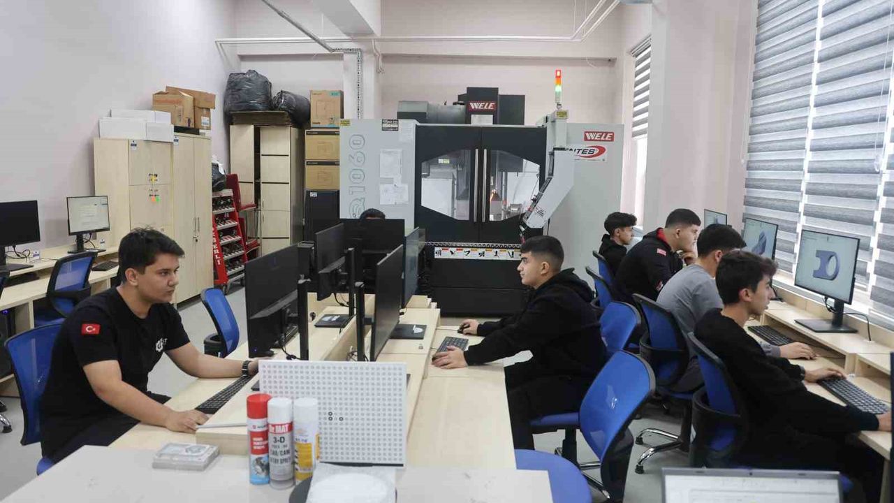 Makine Teknolojisi atölye şefi Ahmet Turan, 'Burada temel bilgileri en azami şekilde öğrenmeye çalışıyor çocuklarımız. Laboratuvarda bilgisayar üzerinde tasarımlarını yapıp daha sonra uygulamalarını ardından CNC tezgahımızda üretim yapıyoruz. Bu şekilde üretime katkı sağlıyorlar' diye konuştu.