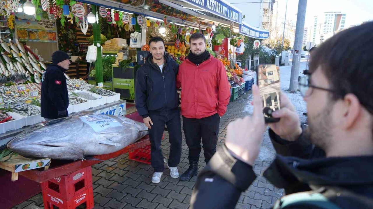 Hayatlarında ilk kez bu büyüklükte bir balık gördüklerini belirten vatandaşlar şaşkınlıklarını gizleyemedi. Kilogramı 400 TL'den satışa sunulan orkinosun parça parça satılacağı öğrenildi.