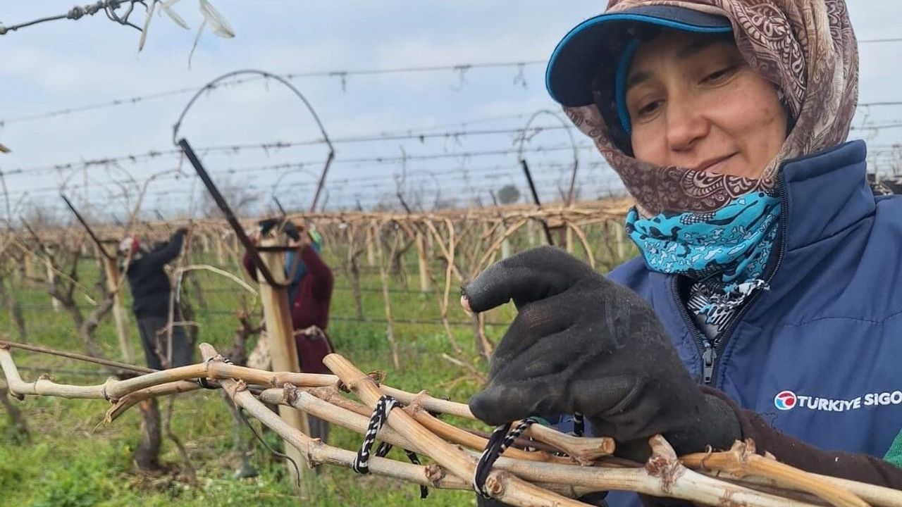 İlçede bağlardaki yoğun mesai çoğunlukla yevmiye usulü sürdürülürken, bazı üreticiler ise imece yöntemiyle maliyetleri düşürmeye çalışıyor.